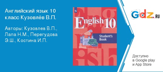 Как правильно работать с ГДЗ по английскому языку за 10 класс Авторы: Кузовлев В.П., Лапа Н.М., Перегудова Э.Ш., Костина И.П.